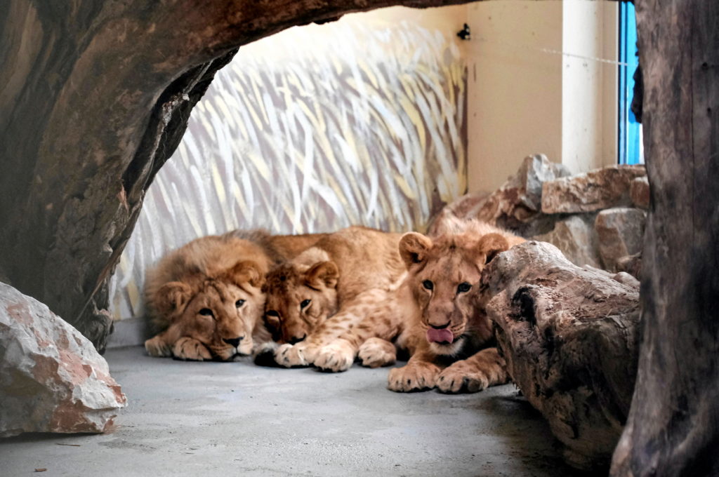 Now at a safe distance from the conflict and after spending four days in cages in the back of a van, the two animals were recovering from the journey in their new enclosure Wednesday, regaining their strength as they lounged in the shade.